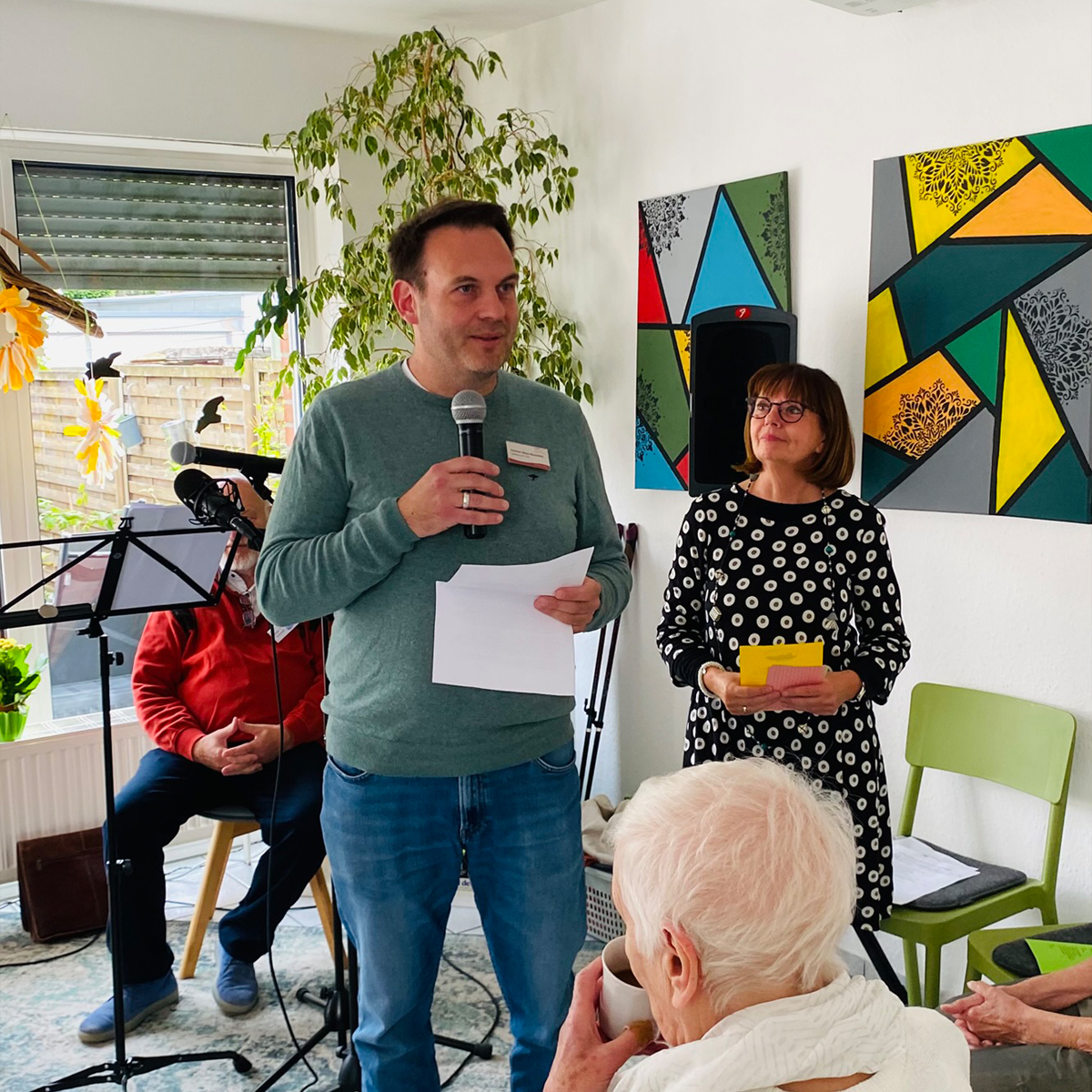 Am 4. Juni 2025 verwandelte sich das Otto-Zillessen-Haus der Diakonie in der Mönchengladbacher City in einen Ort voller Geschichten, Musik und Herzlichkeit. Unter dem Motto „Geschichten und Lieder, die das Leben schreibt“ luden Helene Klein und Andreas Neugebauer zu einem besonderen Erzählcafénachmittag ein. Helene Klein zog das Publikum mit ihren selbstverfassten Geschichten und Gedichten sofort in den Bann. Ihre Texte – mal zum Schmunzeln, mal zum Nachdenken, immer zum Mitfühlen – öffneten kleine Fenster in ihr eigenes Leben und spiegelten zugleich unseren Alltag wider. Authentisch, lebensnah und einfach berührend! Musikalisch sorgte Andreas Neugebauer für Gänsehautmomente. Mit Gitarre und Stimme brachte er eigene Lieder sowie bekannte Melodien und beliebte Schlager auf die Bühne – gekonnt, schwungvoll und mit viel Gefühl. Die Musik ergänzte Helene Kleins Geschichten perfekt und schuf eine rundum stimmungsvolle Atmosphäre. Kein Wunder, dass im Saal eifrig mitgesummt und mitgesungen wurde. Bei Kaffee und Kuchen kamen die Gäste schnell ins Gespräch, lachten, tauschten Erinnerungen aus und genossen das Beisammensein – ganz im Sinne des Erzählcafés. Fazit: Ein gelungener Nachmittag, der Lust auf mehr macht und einmal mehr zeigt: Die schönsten Geschichten schreibt immer noch das Leben selbst!