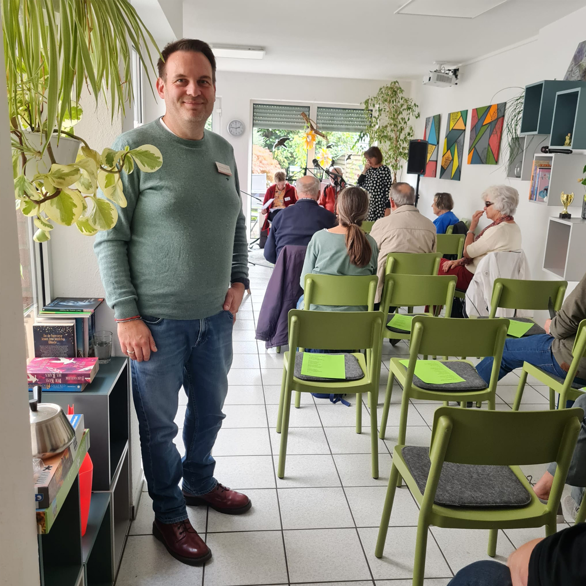 Der Reha-Verein Mönchengladbach (Verein für die Rehabilitation psychisch Kranker e.V.) hatte das Mönchengladbacher Erzählcafé zu Gast und öffnete dafür sein Haus an der Beeker Straße in Rheindahlen. Das Erzählcafé wiederum bat die Wegberger Autorengruppe "SiebenSchreiber“, unter dem Motto „Gescheit gescheitert“ einige unterhaltsame und zugleich nachdenkliche Texte zu präsentieren. Am 24. September war es dann soweit. Der Leiter des Hauses Herr Andreas Meyer-Buschfeld, und sein engagiertes Team sorgten für eine besonders herzliche und gemütliche Atmosphäre, in der sich Gäste und Vortragende sofort wohlfühlten. Ein kulinarisches Highlight bot die Küche des Vereins mit ihren köstlichen, selbstgebackenen Nussecken und Bienenstich-Schnitten – ein Genuss, der perfekt zum Nachmittag passte. Herr Meyer-Buschfeld und Frau Sigrid Verleysdonk-Simons vom Erzählcafé begrüßten die Gäste sowie die Vertreter der Autorengruppe „SiebenSchreiber“, Frau Inga Lücke und Herrn Peter C. Schmidt. Frau Lücke und Herr Schmidt trugen ihre amüsanten und zugleich tiefsinnigen Geschichten mit Charme und Ausdruckskraft vor – und trafen dabei stets den richtigen Ton. Das Publikum dankte ihnen mit herzlichem Applaus. Herr Schmidt las zusätzlich zwei Texte des erkrankten Günter Arnolds, der leider nicht persönlich anwesend sein konnte. Wieder einmal zeigte sich: Eine Veranstaltung der „SiebenSchreiber“ ist immer eine kleine Reise nach Wegberg wert. Für die musikalische Begleitung sorgte der neue „gute musikalische Geist“ des Erzählcafés, Andreas Neugebauer, der mit seiner Gitarre und seinem Gesang für heitere und stimmungsvolle Momente sorgte. Mit sichtbarer Freude sang das Publikum bei vielen Liedern begeistert mit. Zum zweiten Mal wurde das Erzählcafé zudem von Mitgliedern der Mönchengladbacher Digitalpaten begleitet. Frau Lindemann und Herr Weuthen zeichneten die Veranstaltung digital auf, damit sie auch Bewohnerinnen und Bewohnern in Altenheimen zugänglich gemacht werden kann – eine wunderbare Initiative für diese Menschen. Ein herzlicher Dank gilt allen, die dazu beigetragen haben, dass das Mönchengladbacher Erzählcafé seinen Mitgliedern und Gästen erneut einen so vergnüglichen und gelungenen Nachmittag bereiten konnte.